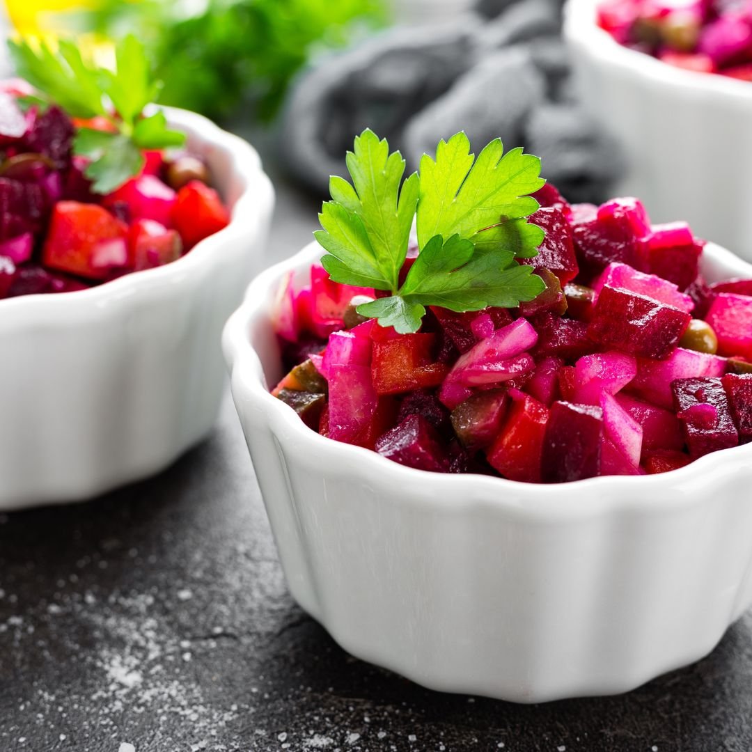 Grated beetroot mixed with fresh coconut, tempered with mustard seeds and curry leaves.