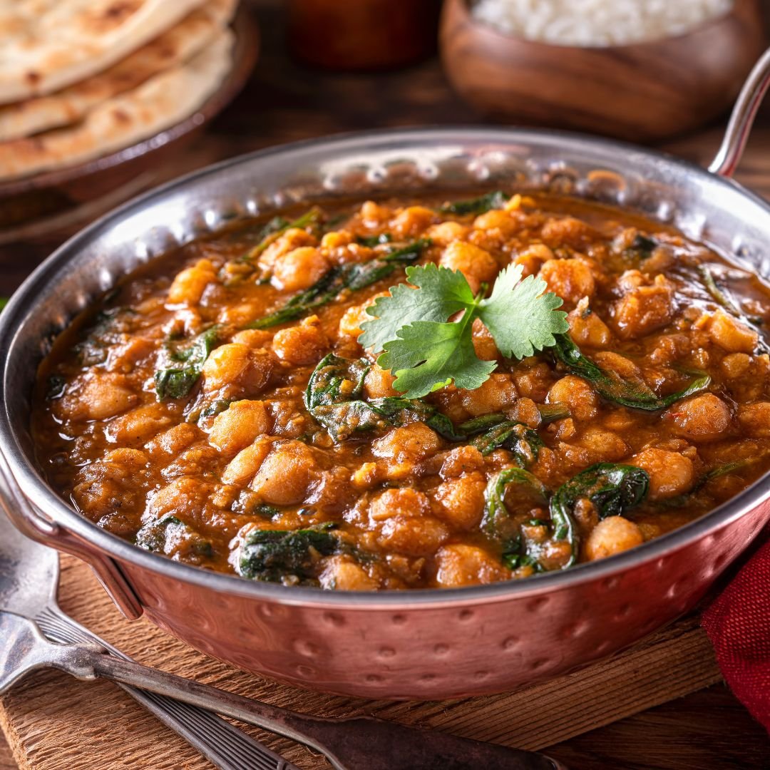A popular North Indian curry made with chickpeas, simmered in a spicy and tangy gravy with a blend of aromatic spices.