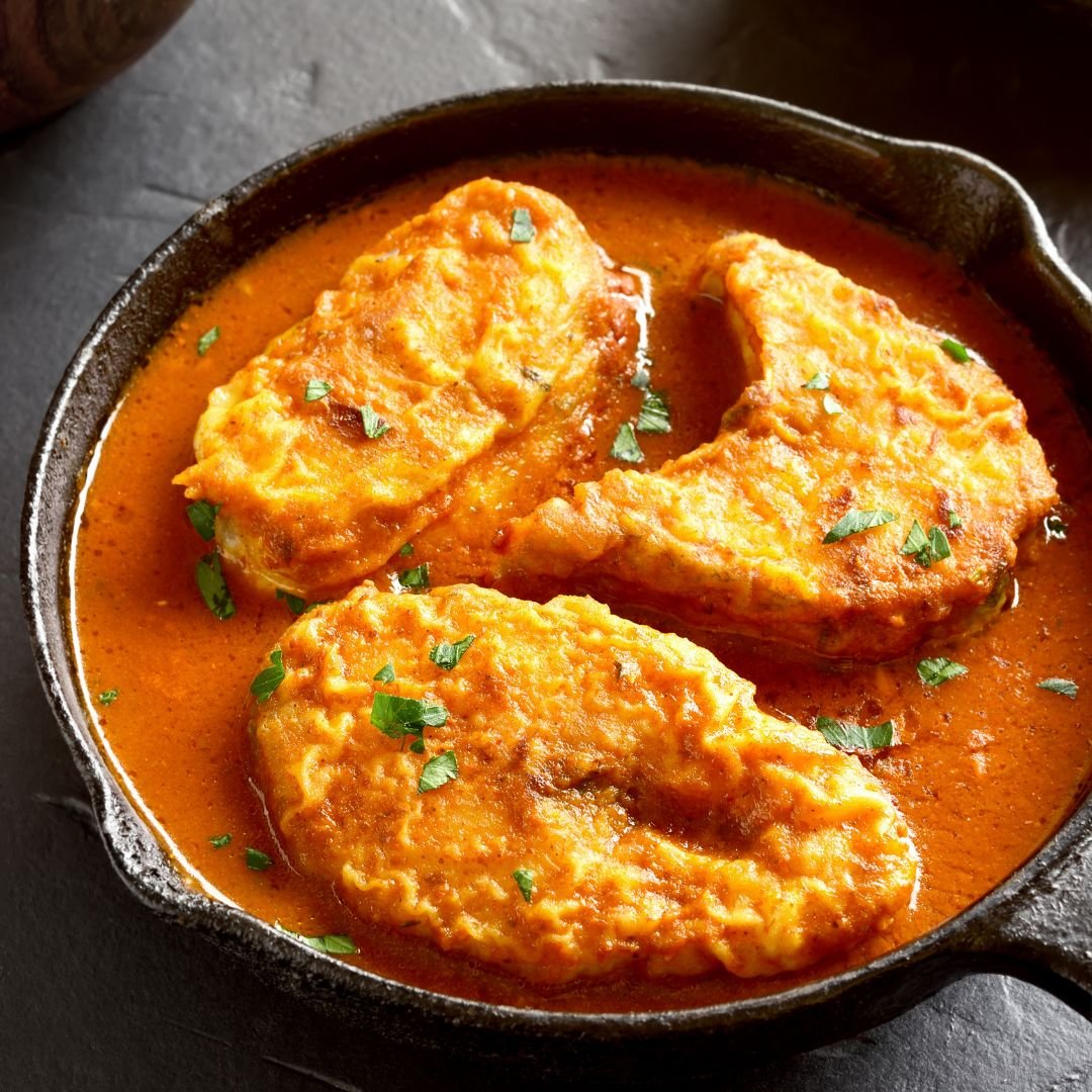 Fish fillets marinated in a rich mix of yogurt and tandoori spices, then grilled or baked until tender and slightly charred.