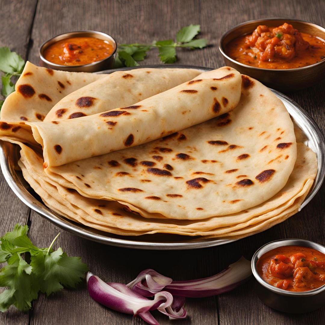 Traditional Indian bread made with whole wheat flour and cooked in a tandoor.